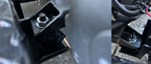 車内側ステンレスブラケットと、ボディパネル側の6mm穴を、8mm穴に拡大加工しナットで固定します。