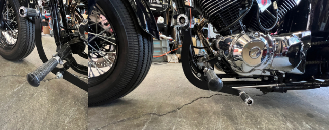 クラッシュバーを装着することで、立ちごけ時のペダル類の破損を回避します。